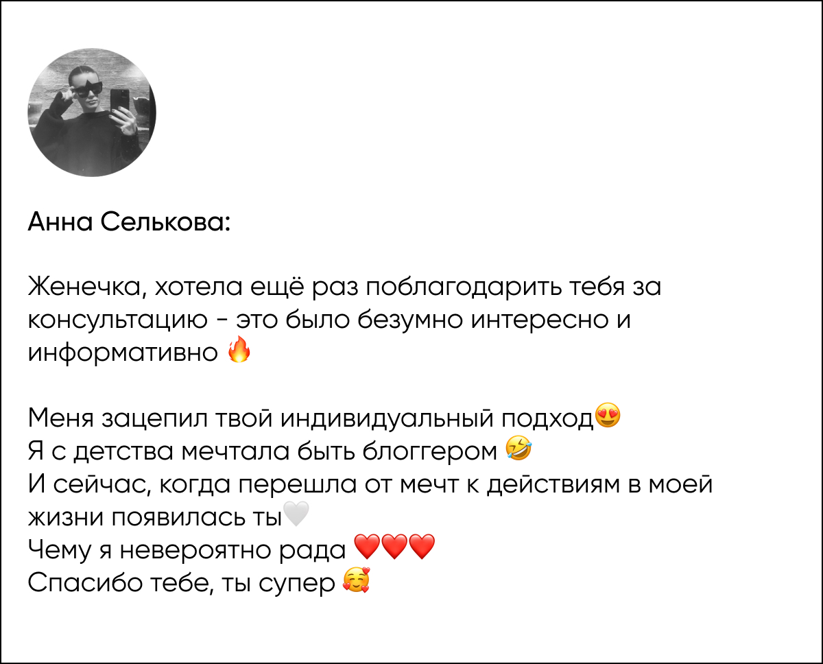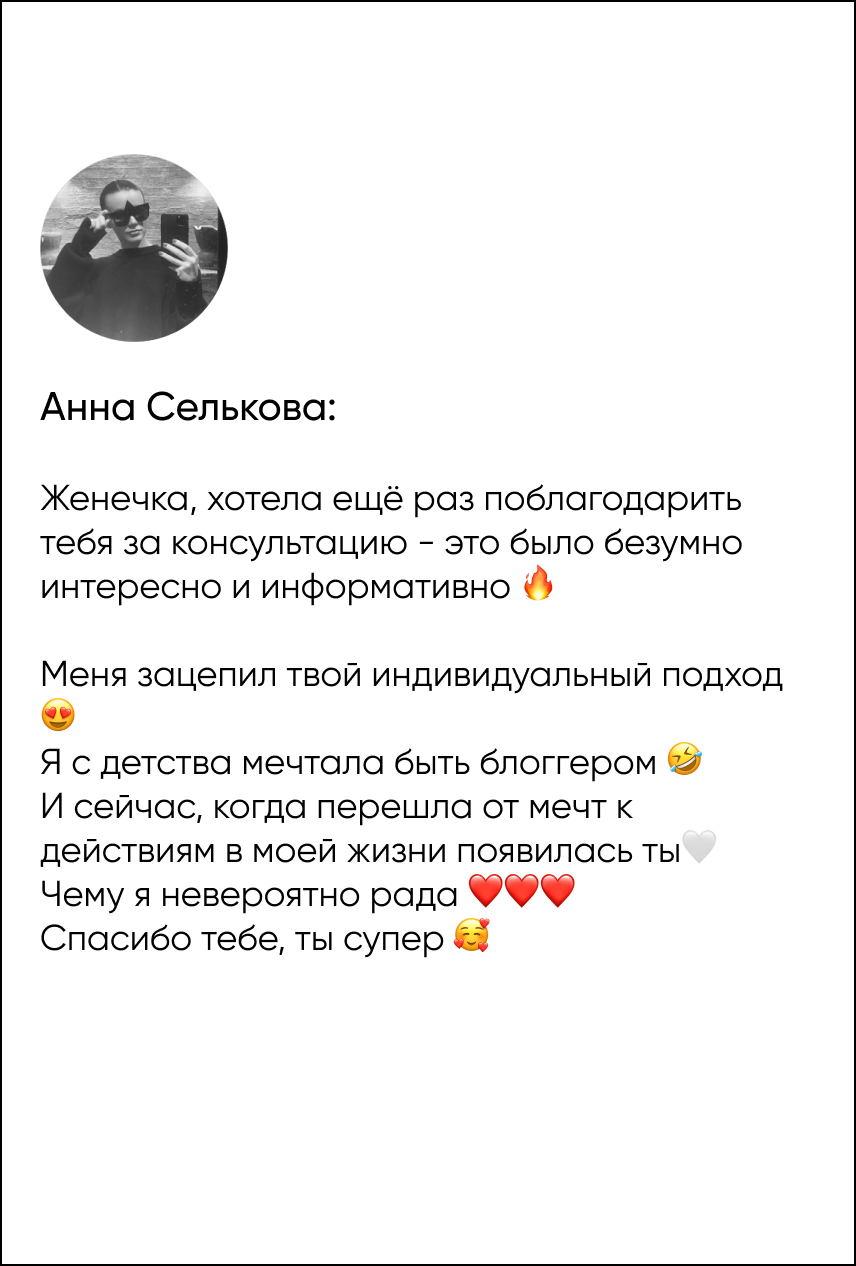 Личная часовая консультация Евгении для закрепления результата (обычная стоимость 45.000₽/430€)